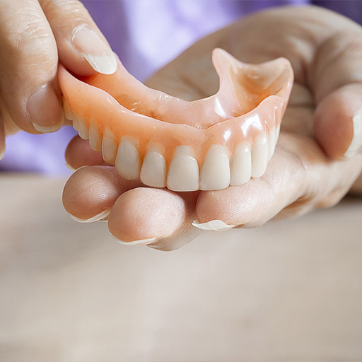 A denture is a removable dental prosthetic designed to resemble a full arch of teeth and gums. You can get a full denture if you’re missing all of your teeth, or a partial if you’re missing only a few teeth. Each denture is custom made to suit your tooth replacement needs and achieve the look you desire.